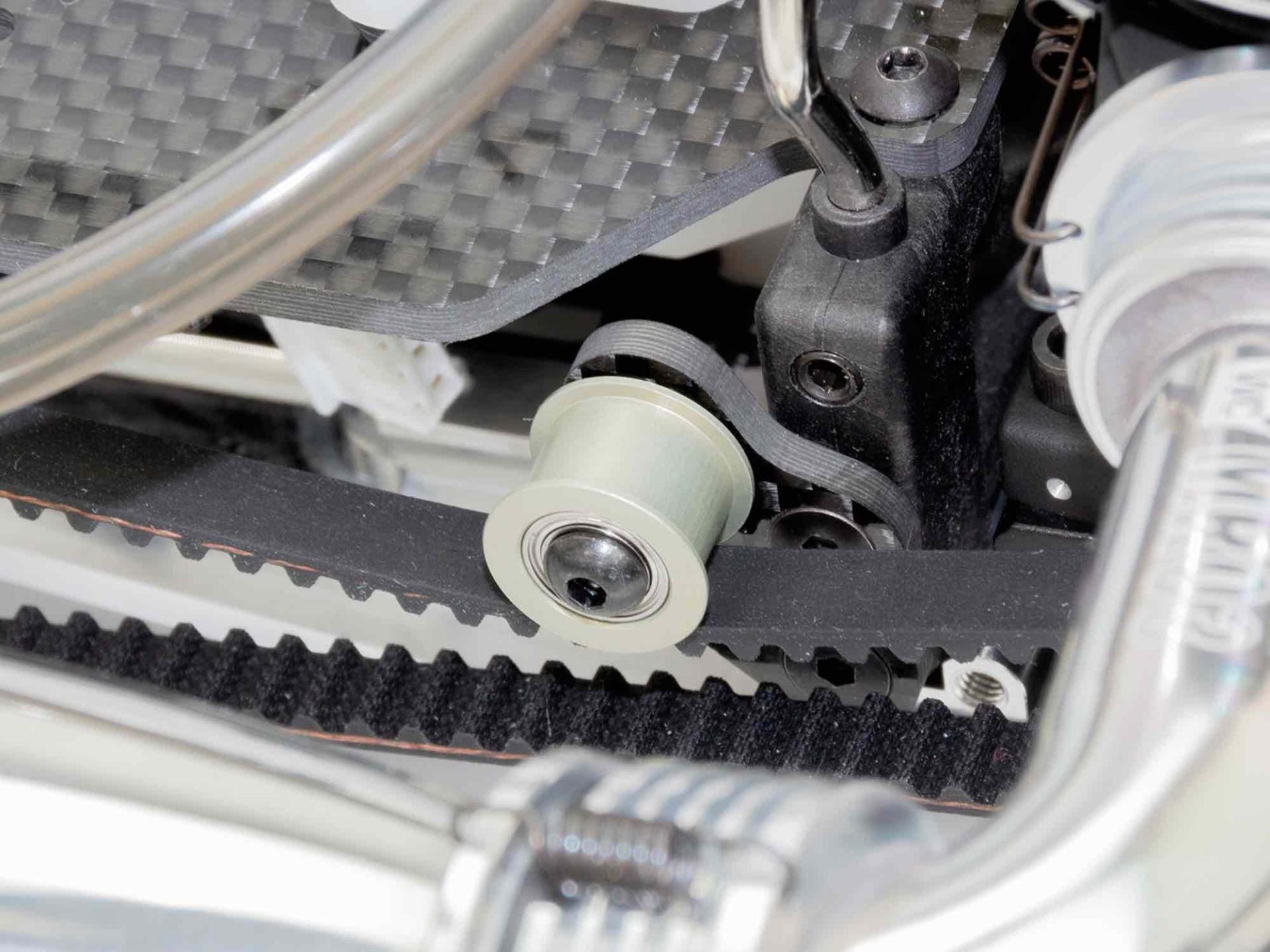 In addition, an adjustable belt tensioner with a 0.5mm eccentricity is provided on the 18T pulley on the front belt side to prevent tooth jumping.