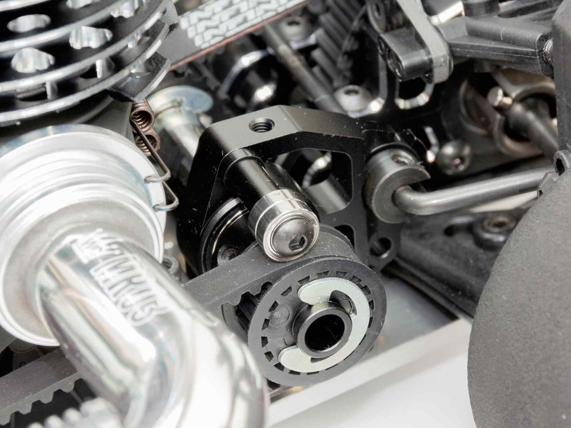 The engine mount is milled on the chassis and lowers the center of gravity by 1mm, contributing to improved stability.