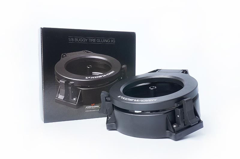The Koswork 1:8 Tire Gluer Jig is a precision mounting and gluing aid for cleanly bonding 1:8 RC tires to rims. It holds the tire and rim securely in position, allowing controlled and even gluing around the entire circumference.